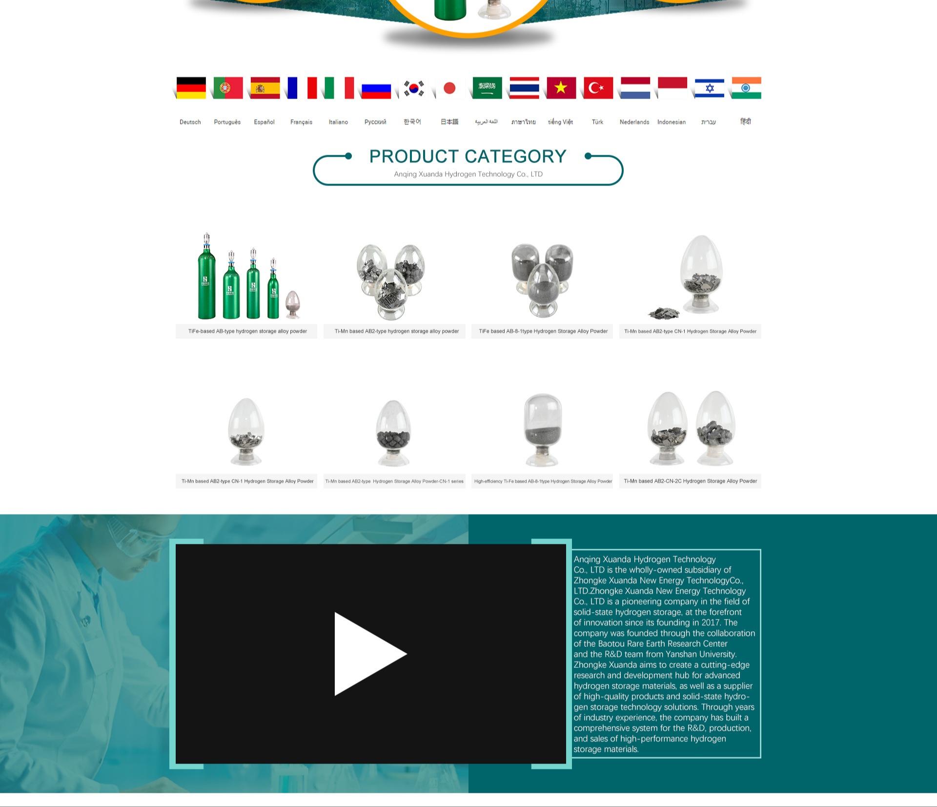 Productos principales:Materiales de Almacenamiento de Hidrógeno en estado sólido, hidruro metálico, fabricación de equipos originales, materiales de batería de hidruro de níquel-metal